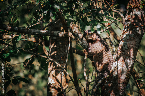 Fototapeta premium A peaceful marmoset or monkey jumping between the trees in the backyard