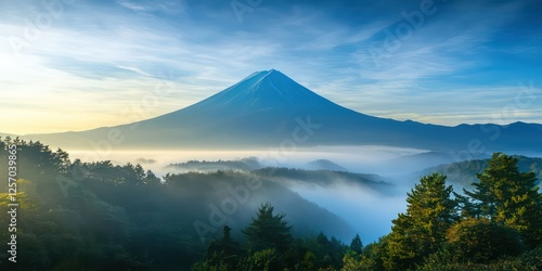 © Sean Hoong, Fototapeta premium A peaceful mountain peak surrounded by mist and ethereal light.