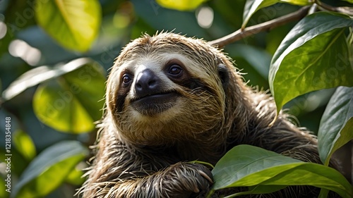 © KAThakshala, Fototapeta premium A Peaceful Sloth Enjoying Leaves in the Calm of the Canopy