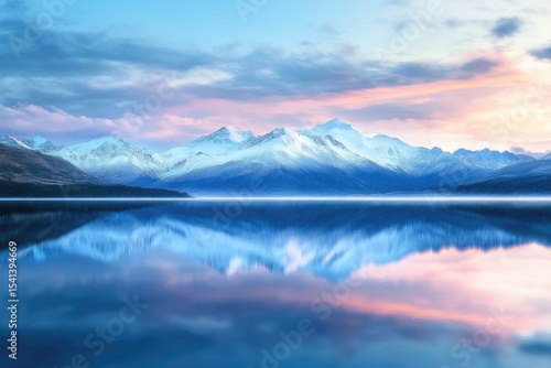 © ant, Fototapeta premium A peaceful view of the snowy mountains amidst a beautiful sky.