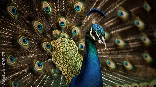 Obraz premium A peacock spreading its feathers AI generated illustration
