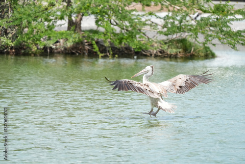 © nopwaratch, Naklejka premium A pelican bird in its natural habitat at the Bangkok Open Zoo in Thailand.