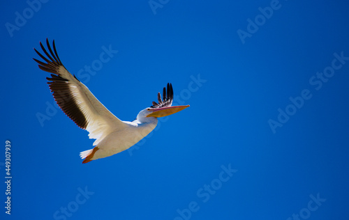 Obraz premium A pelican flying over Lake Chapala in Mexico