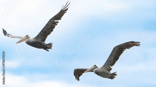 © Robert, Fototapeta premium A Pelican taking flight in Santa Cruz, California