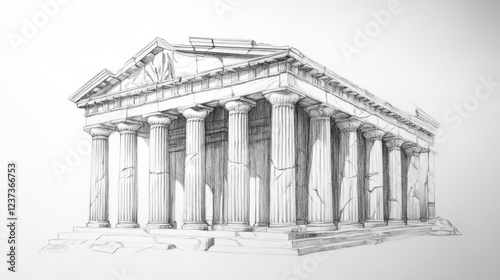 © Aranya, Obraz premium A pencil sketch of a classical Greek temple,