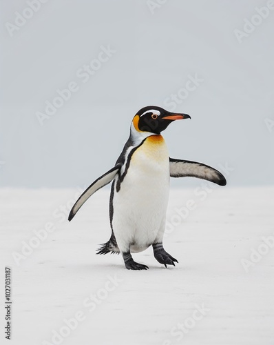 © Arceli, Obraz premium a penguin waddling by on plain white background