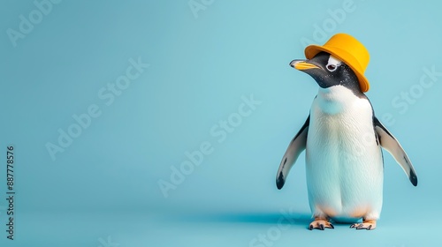 © Galib, Fototapeta premium A penguin wearing a yellow hat.
