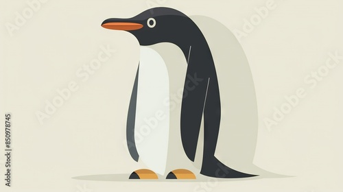 Fototapeta premium A penguin with an orange beak stands on a white background and has a black-and-white beak