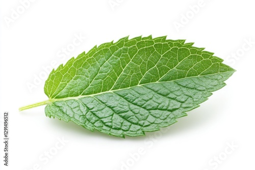 © PinkiePie, Obraz premium A peppermint leaf with serrated edges, isolated