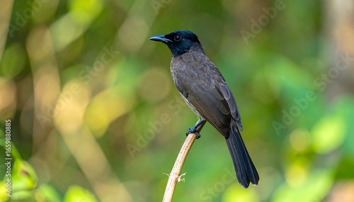 © shofi, Fototapeta premium A perched bird of grey and black hues.