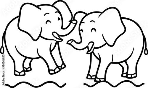 © Bappaditya Roy, Naklejka premium A perfect Elephant line art coloring book for kids play