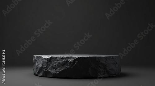 © Pixel Corner, Naklejka premium A Perfectly Chiseled Black Rock Platform Podium for Product Presentation.
