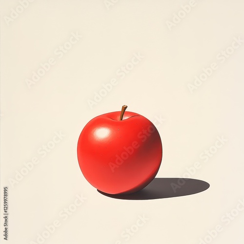 © NpicArt, Obraz premium A perfectly round red apple sits against a light background