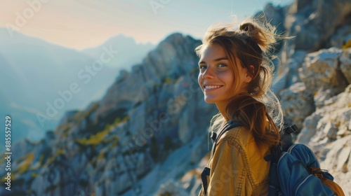 Naklejka premium A person climbing or hiking, possibly for adventure or exploration, with a...
