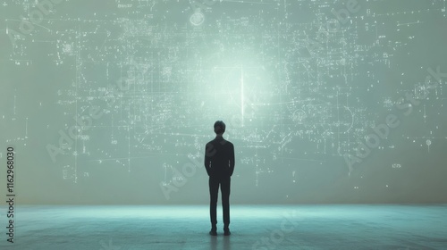 © Aris Suwanmalee, Fototapeta premium A person contemplating future technology visions.