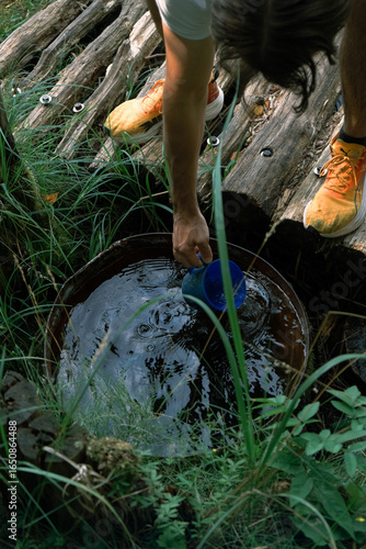 © Dovile Kerpyte, Obraz premium A person drawing water from a spring