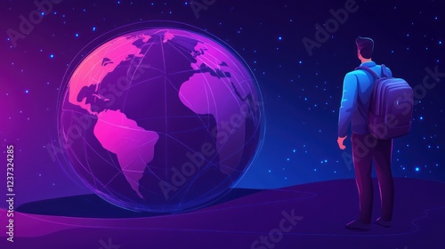 © Ida, Obraz premium A person gazes at a glowing globe in space.