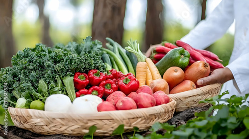 Fototapeta premium A person holding baskets of fresh garden harvested vegetables
