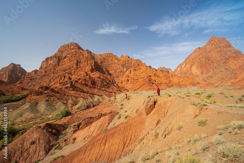 © imphilip, Naklejka premium A person in red dress stands in the wilderness.