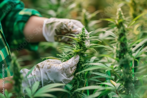 © Andrei, Obraz premium A person is holding a bunch of marijuana plants