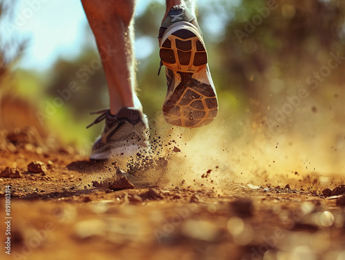 © shobakhul, Obraz premium A person is running through a field of dirt.