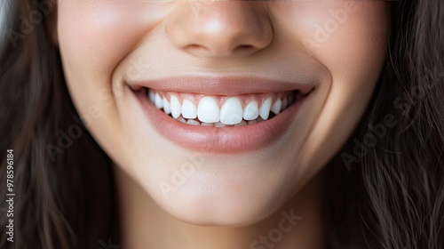 © Matcha_09, Obraz premium A person's warm smile, revealing dimples in their cheeks.