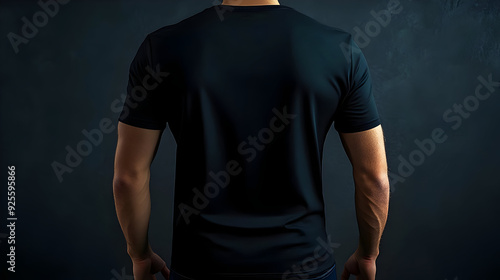 © Siasart Studio, Naklejka premium A person seen from behind wearing a plain black t-shirt.
