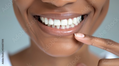 © Leli, Obraz premium A person smiles with white teeth, highlighting dental care