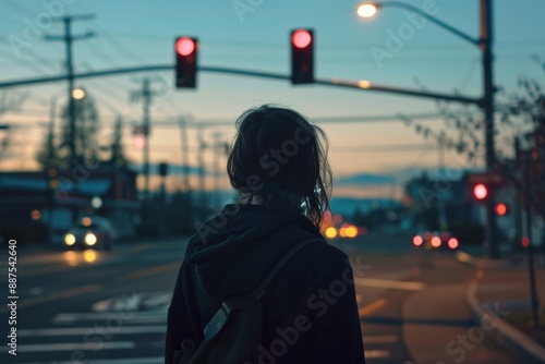 © Syahrul Zidane A, Obraz premium A person standing at a crossroads at dusk, looking back over their shoulder with a pensive expression