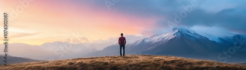 © May Chanikran, Fototapeta premium A person standing in a majestic mountain landscape.