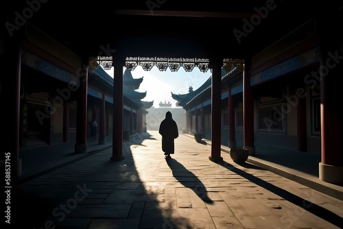 © Etverk Illustration, Obraz premium A person walking on a sidewalk Generative AI