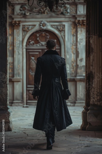 © Fotograf, Naklejka premium A person walking through an archway, could be used for travel or architecture images