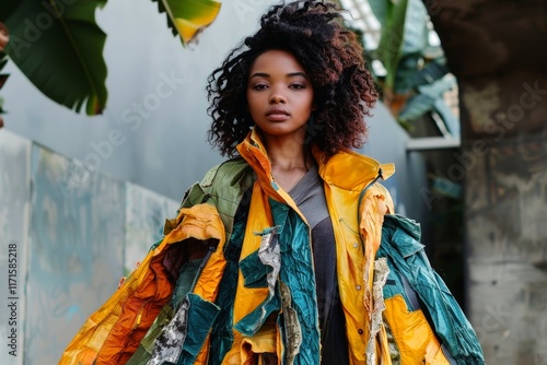 © Michael, Fototapeta premium A person wearing a trendy outfit made from recycled materials.