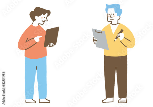 © きなこもち, Obraz premium A person with a tablet and a person with a binder_color