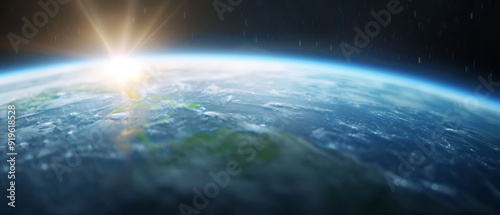 Fototapeta premium A perspective of Earth from space, sun passing through cloud cover, Earth at...