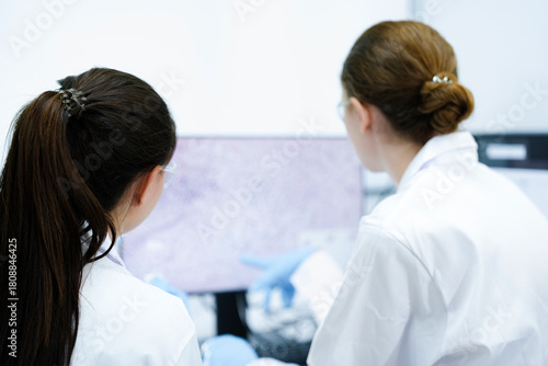 Fototapeta premium A pharmaceutical Quality Control QC team ensures GxP compliance. Two...