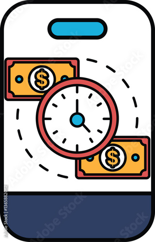 © toonsteb, Obraz premium A phone with a clock and two dollar bills on it