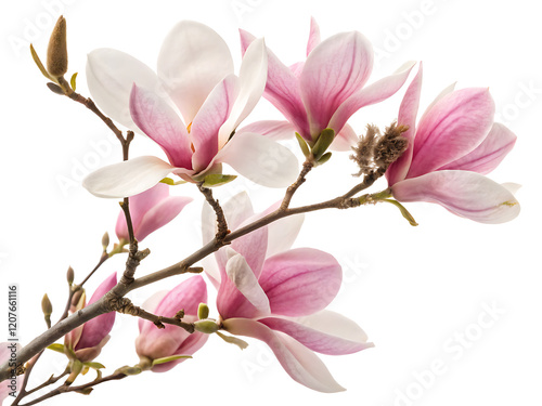 © Cuteart009, Fototapeta premium A photo featuring a branch of pink flowered magnolia