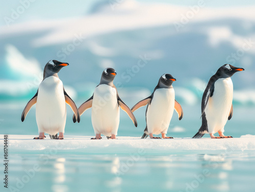 © kucindacat, Fototapeta premium a photo groups of penguin at iceberg