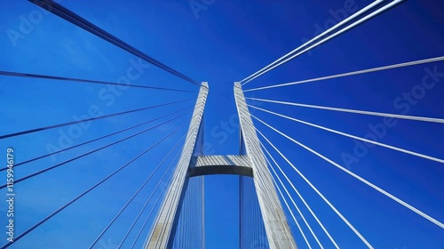 © Gambar Upi, Naklejka premium A photo of a bridge taken from a low angle with a blue sky in the background. represents civil engineering