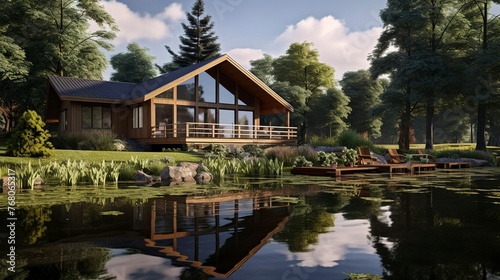 Obraz premium A photo of a Bungalow Reflecting Tranquil Living