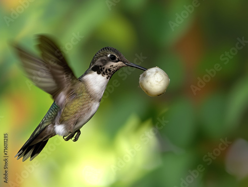 Fototapeta premium A Photo of a Hummingbird Playing with a Ball in Nature