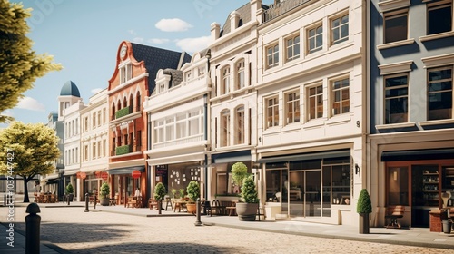 © Muhammad, Obraz premium A photo of a mixed-use building with shops