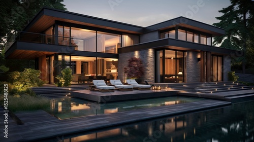 © Deira Studio, Obraz premium A photo of a modern house with a screen