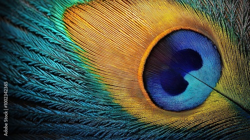 Obraz premium A photo of a peacock's feather with a bright blue and yellow pattern