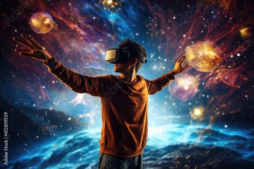 Fototapeta premium A photo of a person experiencing a virtual reality( VR) simulation....
