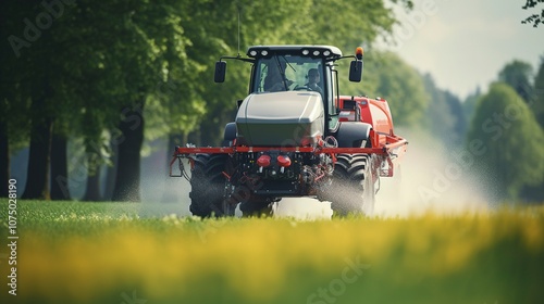 © Muhammad, Fototapeta premium A photo of a tractor pulling a large fertilizer