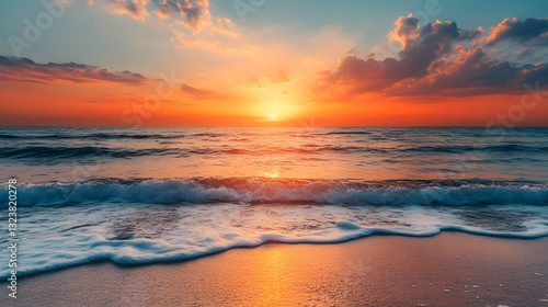 © Jessy Art, Fototapeta premium A photo of a vibrant sunset over a calm ocean