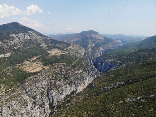 © Géza, Fototapeta premium A photo of a view of a mountain with a road going through it