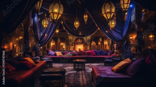 Fototapeta premium A photo of an Arabian nights-themed hookah lounge.